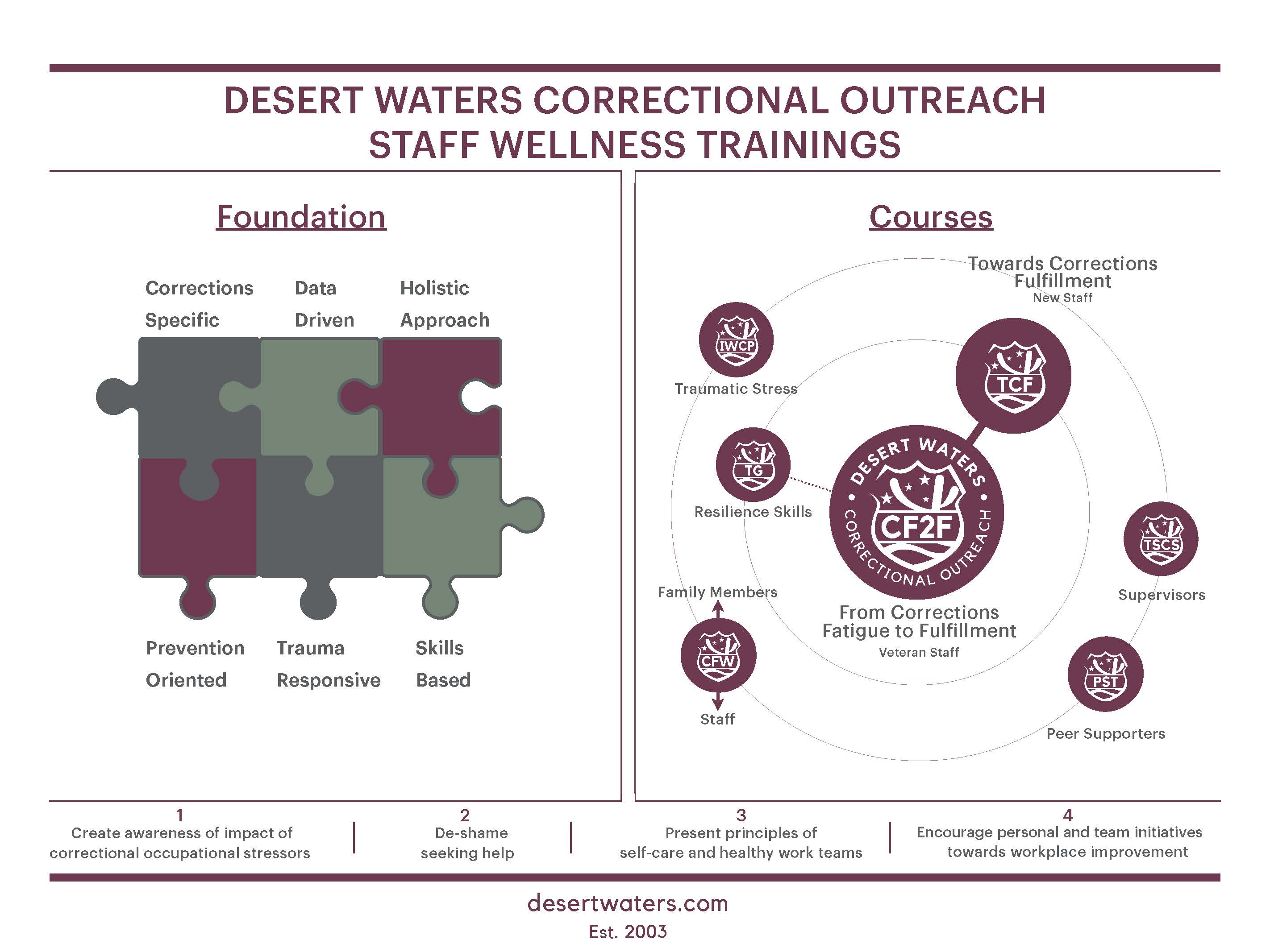 Data-driven: They are based on research conducted by Desert Waters and others with corrections staff of all ranks and job roles, and they are also based on research findings regarding other relevant populations, such as the military and other first responders.
